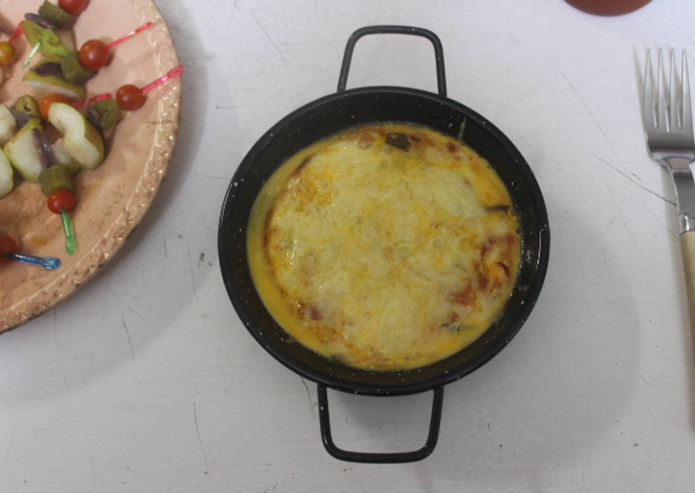 El otro día, escarbando entre las sartenes de casa encontré estas sartencitas individuales, que ni recordaba tener y se me ocurrió consumir unas verduras cocidas que me sobraron de otra receta.